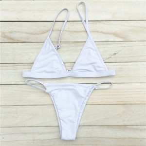 This regal bikini is made with a Spandex, Cotton, and Polyester blend.